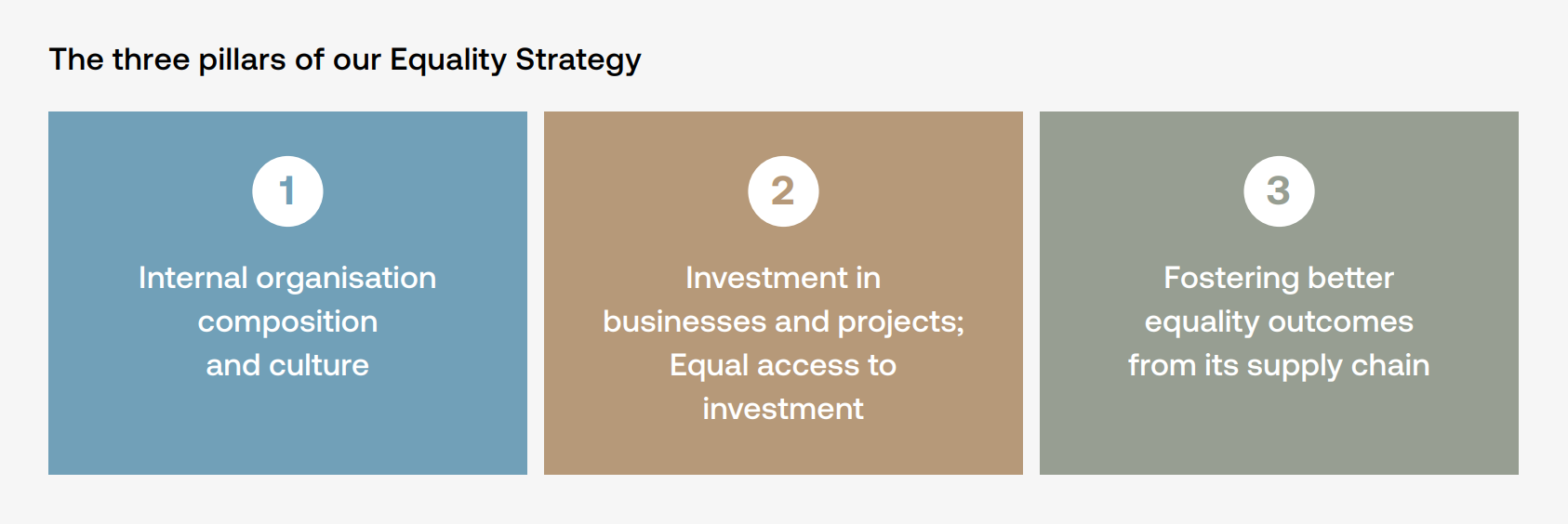 We are approaching this through three key focus areas as shown above – challenging ourselves and our internal practices, investing in diverse businesses and supporting and challenging our investee companies, and working with the wider industry.